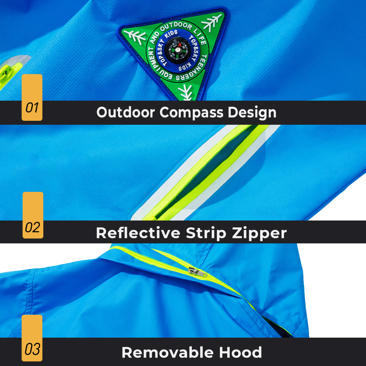 • [Lightweight & Portable]:  The rain jacket can be packaged into a backpack, or schoolbag, easy to carry items for school travel.