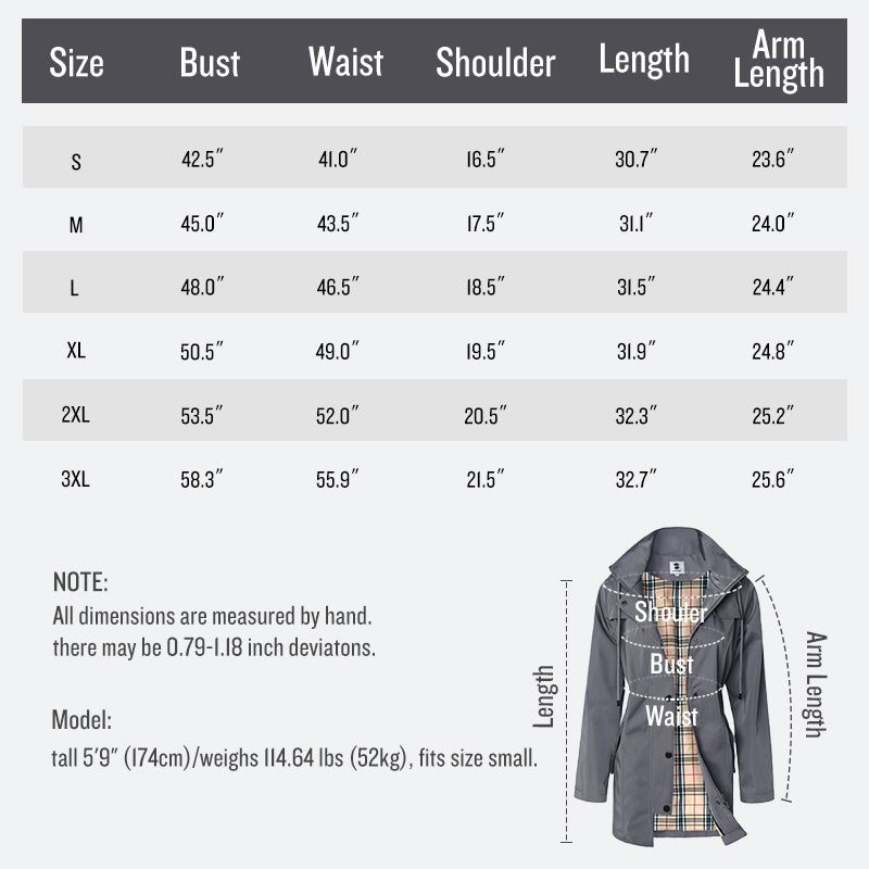 • [Occasions]: Long trench coat design, warm and long enough to shield you from the wind and cold weather. Perfect for light rainy daily life / outdoor sports like climbing / running / walking / fishing / riding / hiking / camping / travelling.