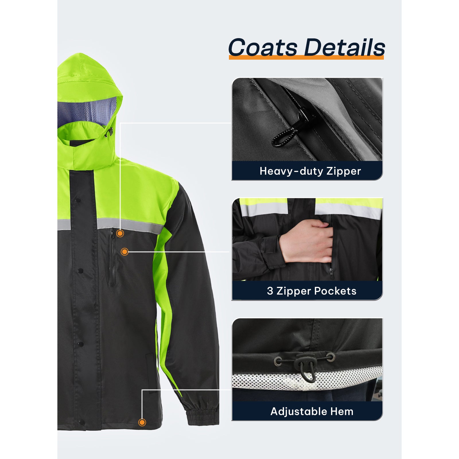 • [Rain Jackets]: Full-length zipper & button closure with storm flap, keep moisture out and keep you dry. Reflective strip design is best for night / rainy days, perfect for motorcyclists.