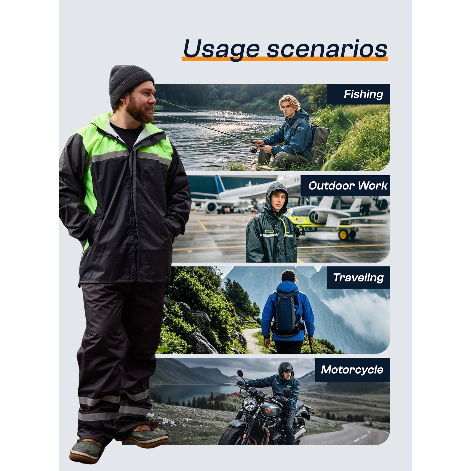 Men's Rain Suit High Visibility Reflective Work Rain Jacket Pants