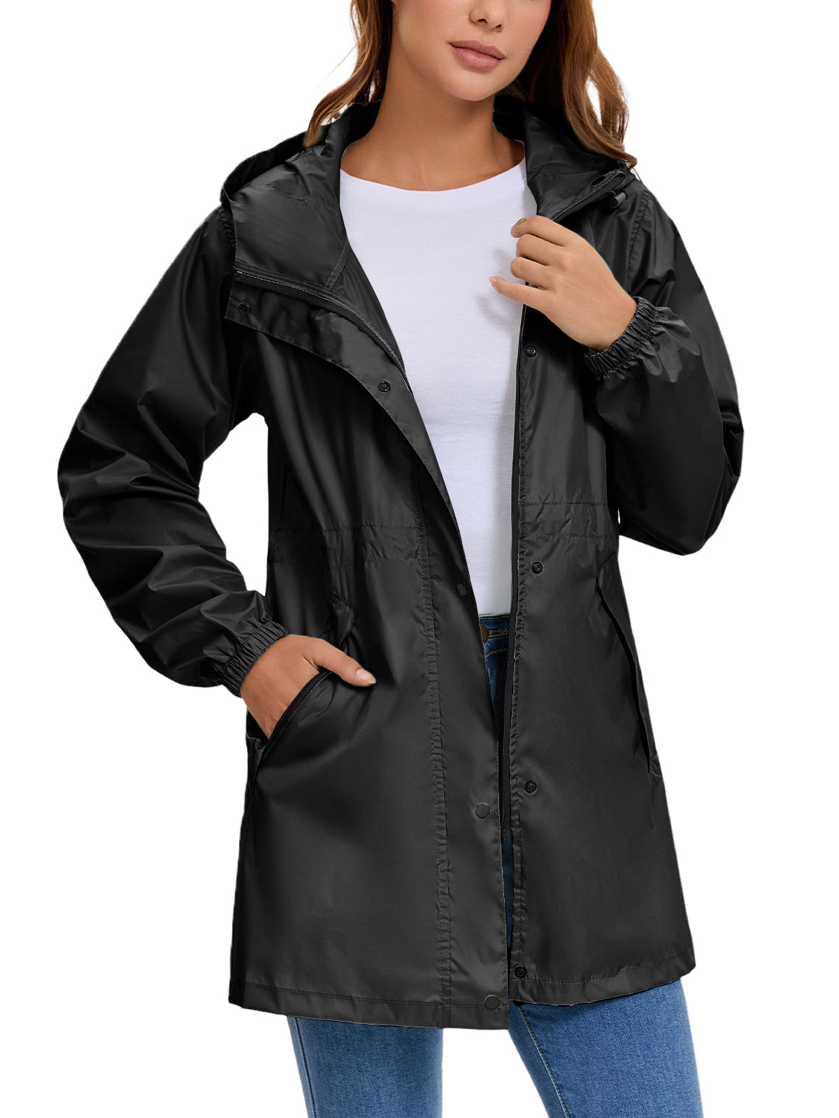Women's Lightweight Long Packable Raincoat with Hooded Outdoor